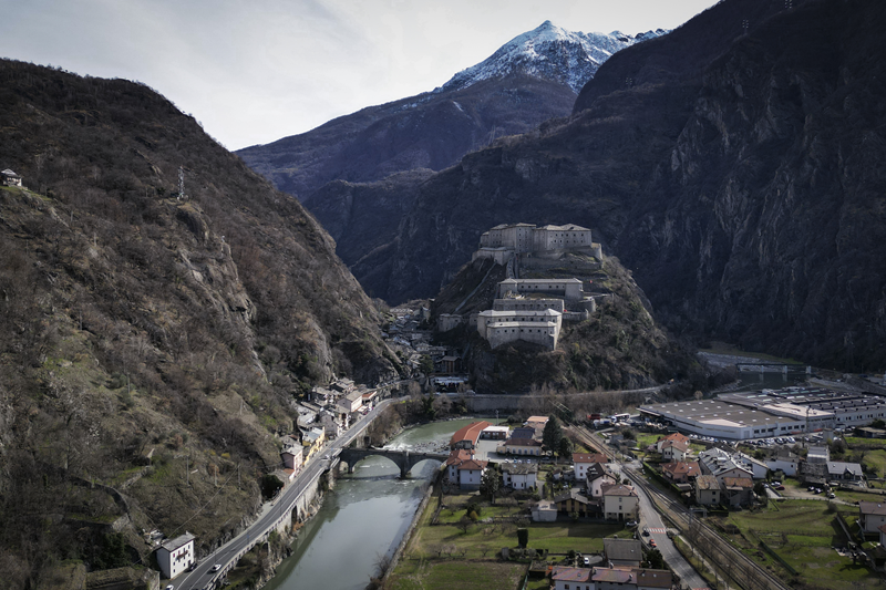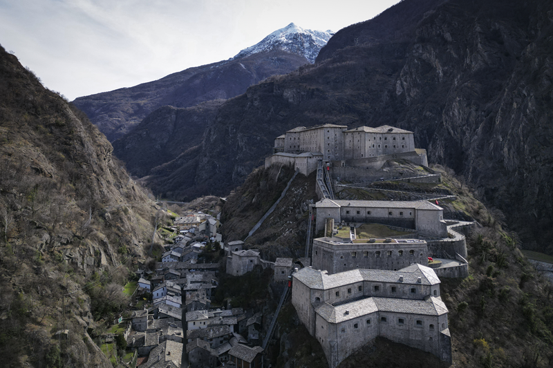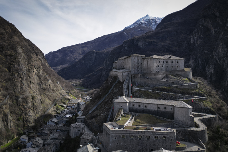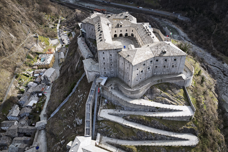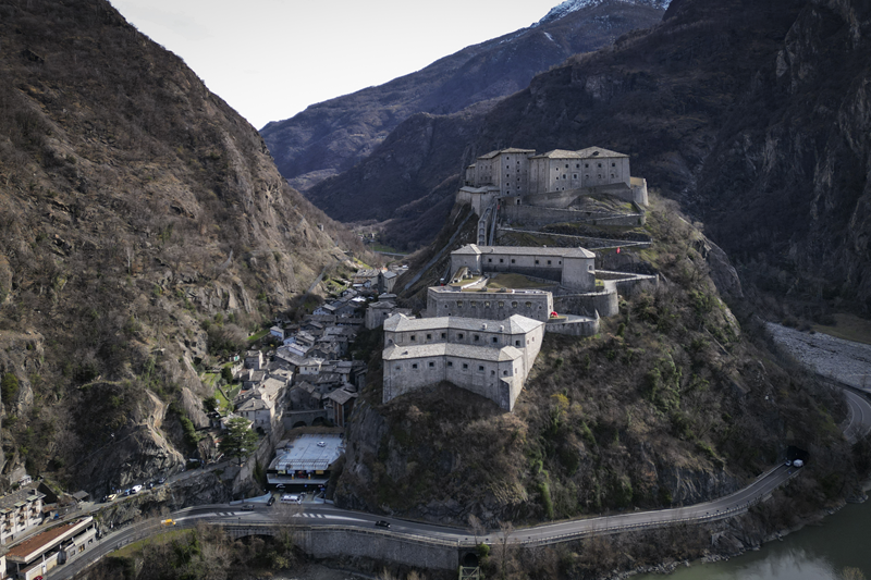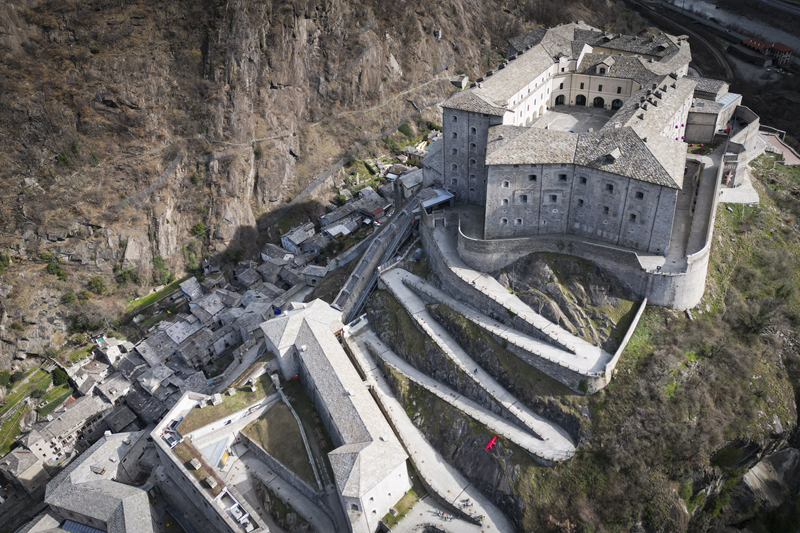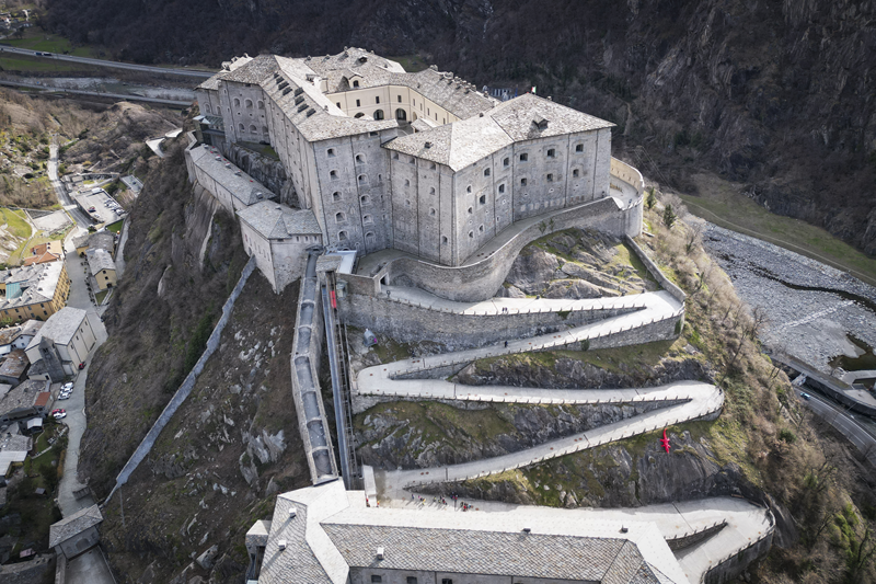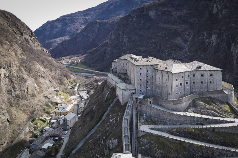 Da Albard di Bard 650 m, si prosegue lungo la strada asfaltata che diviene sterrata nel giro di poche decine metri e si trasforma quasi subito in mulattiera lastricata e gradinata. Risalendo a tornanti un fitto bosco di castagni, la mulattiera (chiaramente realizzata per scopi militari) tocca un nucleo di case dirute, addossate alla roccia. Subito dopo, trascurate le diramazioni di sinistra (in salita) e destra (in discesa) continua riportata su un muretto a secco, in un tratto in cui il fianco della montagna sembra incombere su di essa. Offrendo splendidi scenari sul forte di Bard e sul villaggio di partenza, il tracciato esce dal bosco di castagni, per correre tra pasi e giungere, ben lastricato, all’alpeggio di Verale 1215 m, preceduto da una cappelletta (ore 1.15 dalla partenza). Senza entrare nel borgo si volge a sinistra, proseguendo per sentiero lastricato in forte pendenza che con un lungo traverso porta al Col de la Cou 1372 m, appena sotto il quale, sul versante di Arnad, sorge il grazioso alpeggio di La Cou. Volgendo a sinistra, a questo punto, passando tra ruderi di edifici militari settecenteschi, ripari per fucilieri e muretti di trinceramento coevi alla costruzione del forte, si raggiunge la panoramica Tête de la Cou 1425 m, segnalata da un cippo in pietra, da cui si gode ottimo panorama sul gruppo del M.te Avic, sulle montagne di Champorcher e sul sottostante forte di Bard (ore 2 complessive).