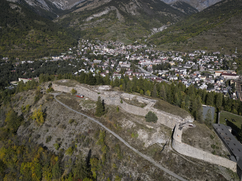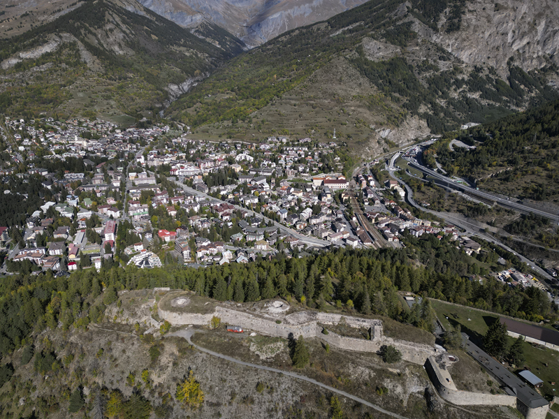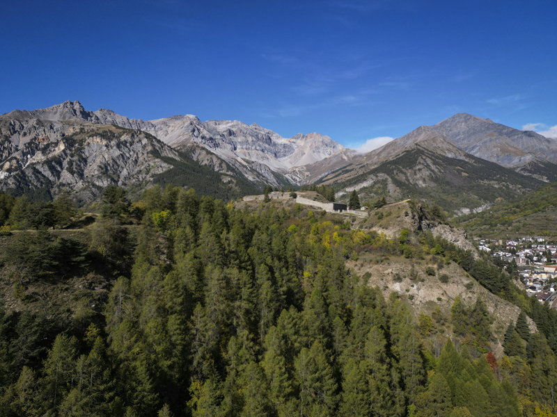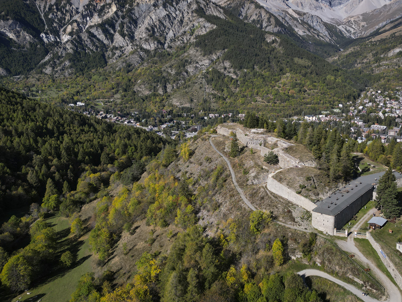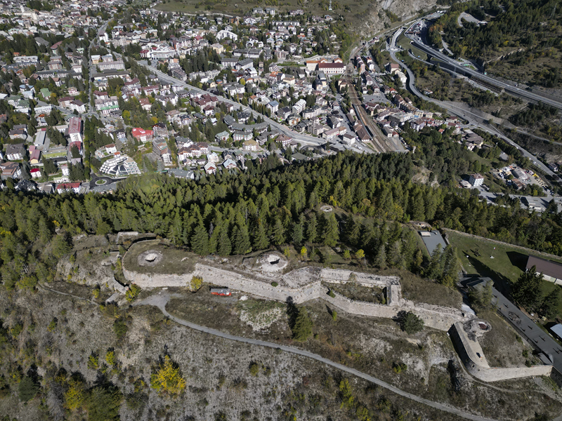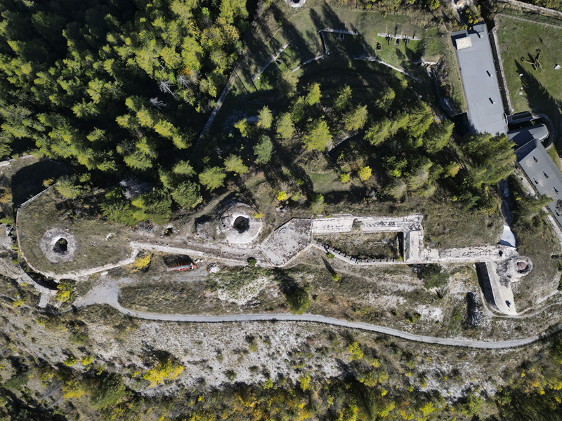 Dal centro di Bardonecchia 1229 m si scende lungo via Bramafam e poi via della Vittoria, seguendo poi a destra, per circa 1 km, la SS. E 24 deviando poi ancora sulla destra per una stradetta sterrata che, sottopassata la ferrovia ed attraversata la Dora inizia a salire nel bosco inanellando tornanti e guadagnando quota. Lasciate a destra, più in basso, le Grange Bersac, la stradicciola raggiunge la graziosa cappelletta dedicata a S. Francesco e S. Chiara, per raggiungere un pianoro dal quale si diramano due strade. Prendendo a destra, in breve, con una leggera rampa si raggiunge l’ingresso del Forte Bramafam 1440 m, posto in ottima posizione panoramica (ore 1.15 dal centro di Bardonecchia)