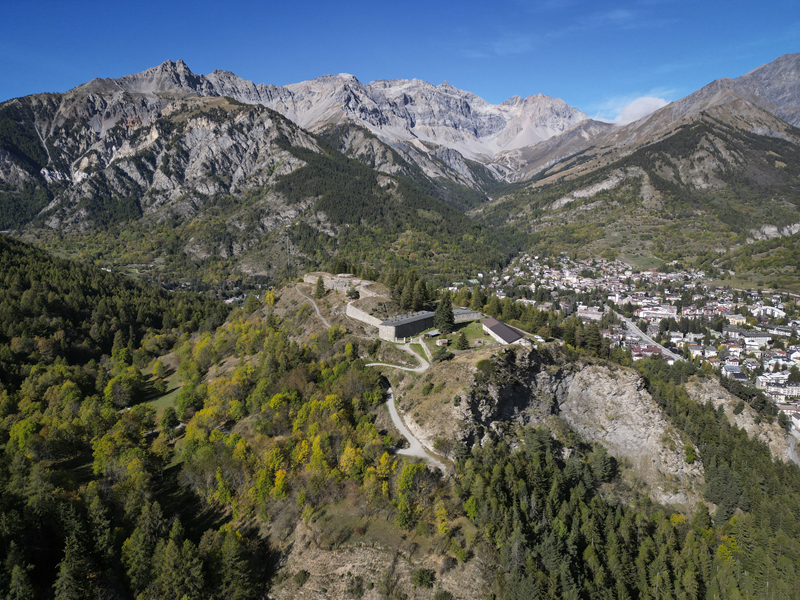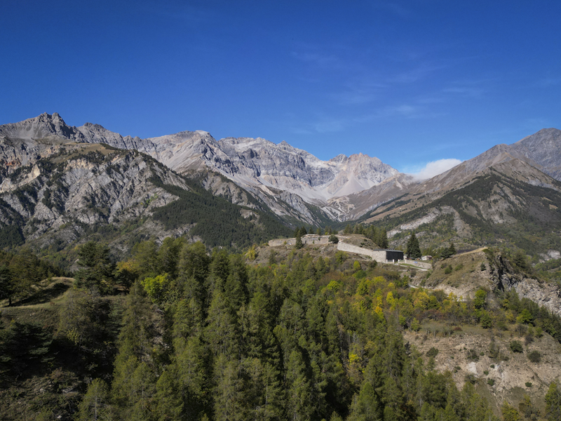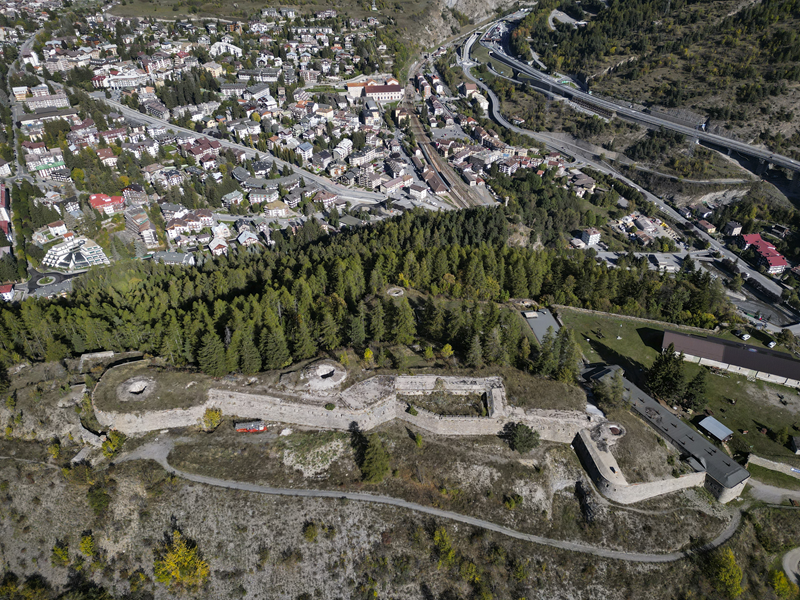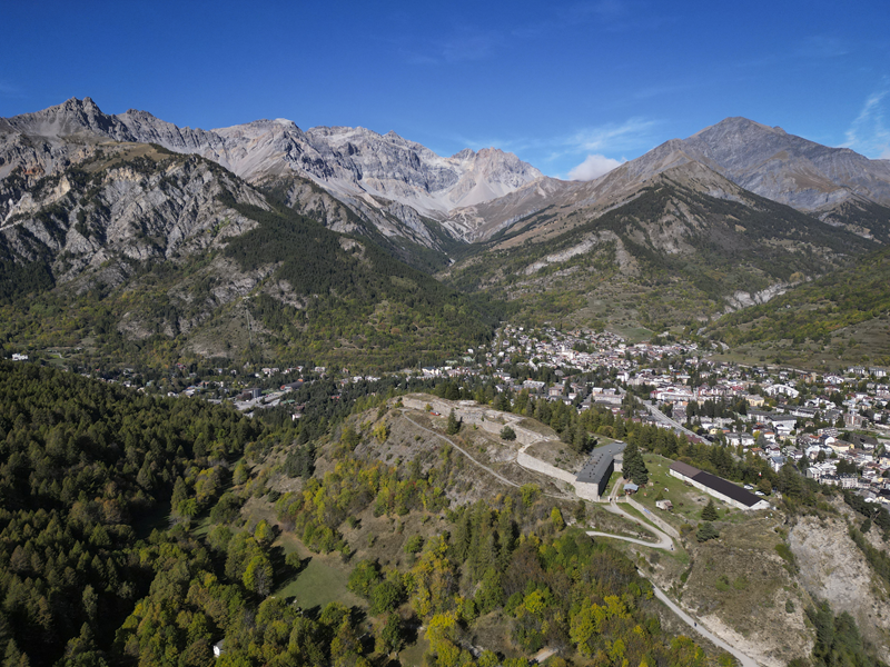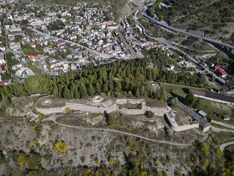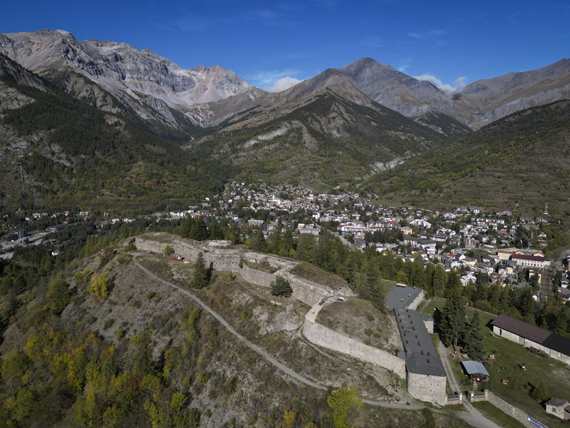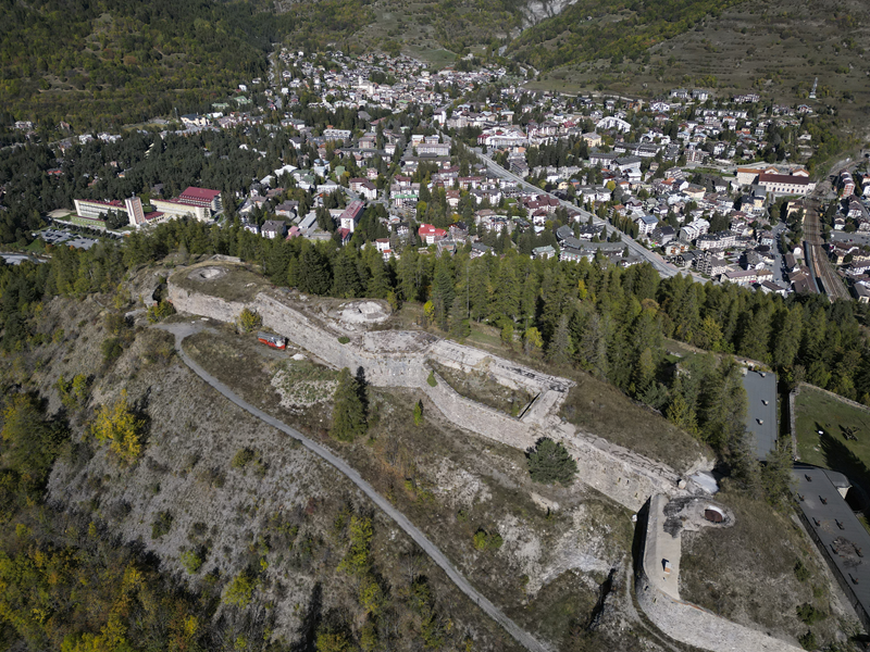 Dal centro di Bardonecchia 1229 m si scende lungo via Bramafam e poi via della Vittoria, seguendo poi a destra, per circa 1 km, la SS. E 24 deviando poi ancora sulla destra per una stradetta sterrata che, sottopassata la ferrovia ed attraversata la Dora inizia a salire nel bosco inanellando tornanti e guadagnando quota. Lasciate a destra, più in basso, le Grange Bersac, la stradicciola raggiunge la graziosa cappelletta dedicata a S. Francesco e S. Chiara, per raggiungere un pianoro dal quale si diramano due strade. Prendendo a destra, in breve, con una leggera rampa si raggiunge l’ingresso del Forte Bramafam 1440 m, posto in ottima posizione panoramica (ore 1.15 dal centro di Bardonecchia)