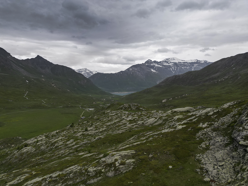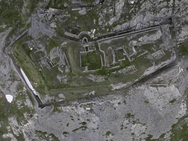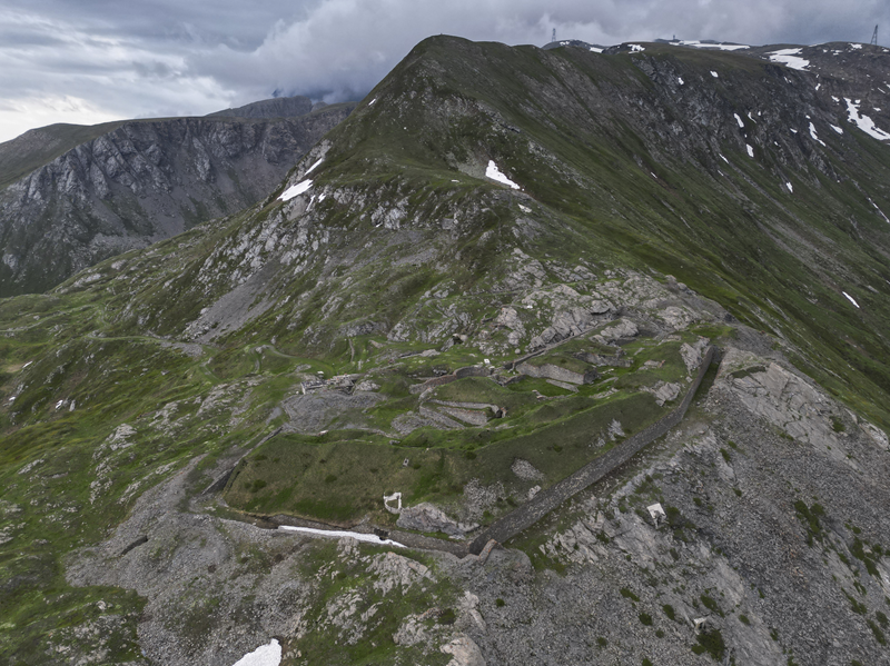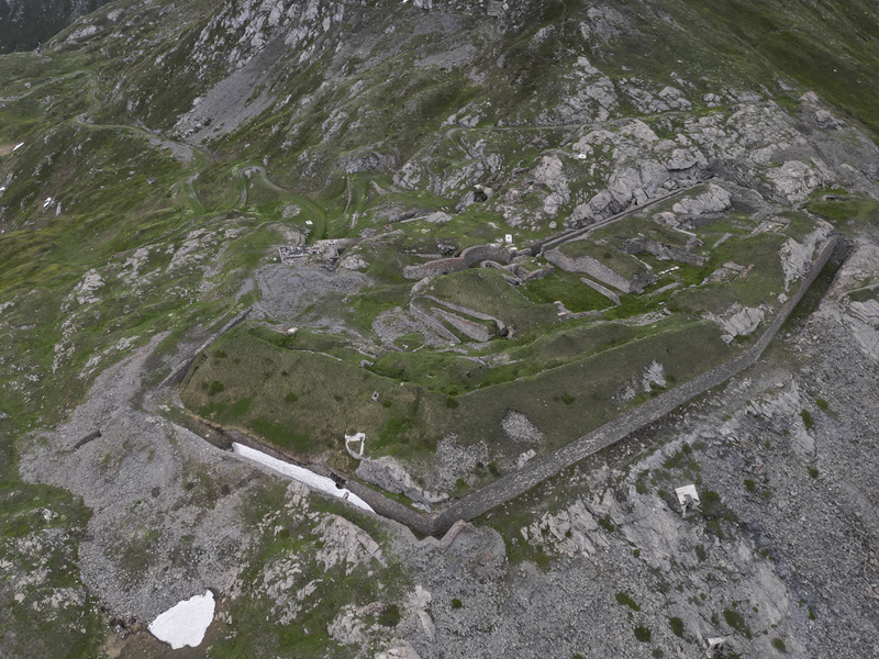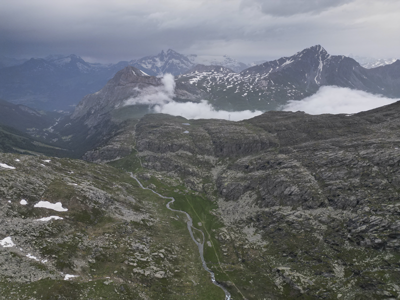 Dal piazzale antistante il villaggio abbandonato di Gran Croce 1870 m si segue la sterrata che sale verso il Mte Malamot fino alla deviazione per il Fort Varisel, che va lasciata a destra. Continuando a sinistra si raggiunge una seconda deviazione, ove si prende a destra per evidente sterrata che affronta un lungo diagonale in falsopiano che porta al Pian della Maddalena, dal quale la strada effettua una serie di tornanti, vera opera di ingegneria militare. Lasciata a destra la Combe Borgne, innevato fino a tarda estate, si supera un risalto erboso, fino a raggiungere l’edificio del comando della fortezza di Pattacroce, unica struttura della zona costruita fuori terra. Poco oltre, finalmente, si raggiunge il vero e proprio Forte Pattacroce2385 m, edificato totalmente in terrapieno, visitabile solo per alcuni ingressi ancora oggi accessibili (ore 2.30 dalla partenza)