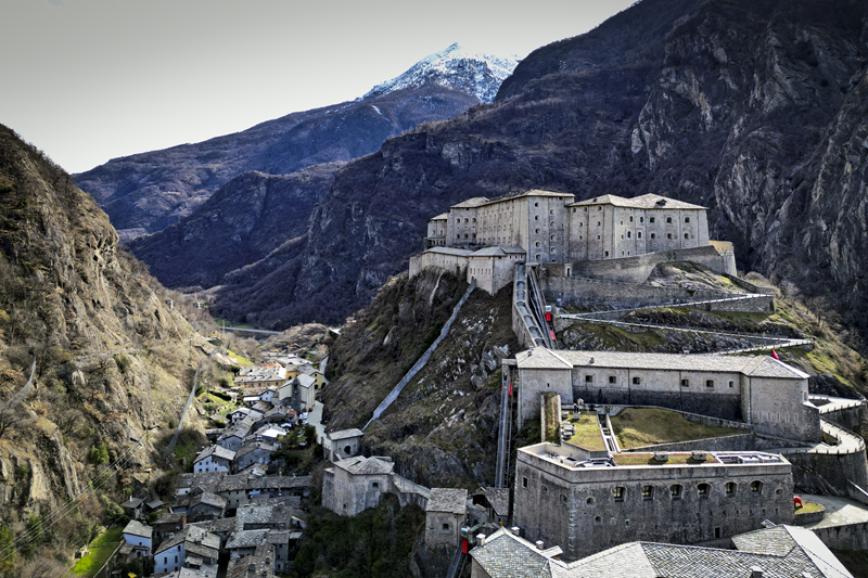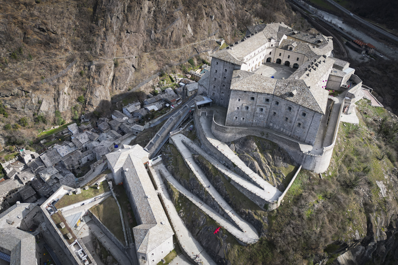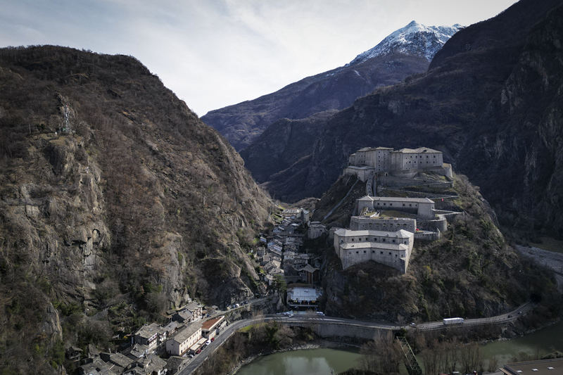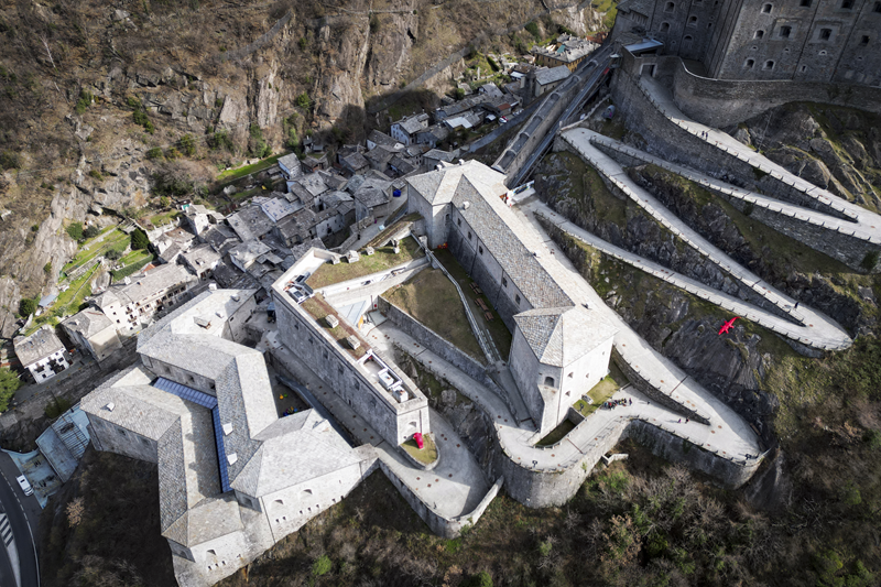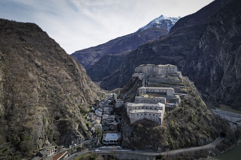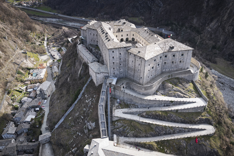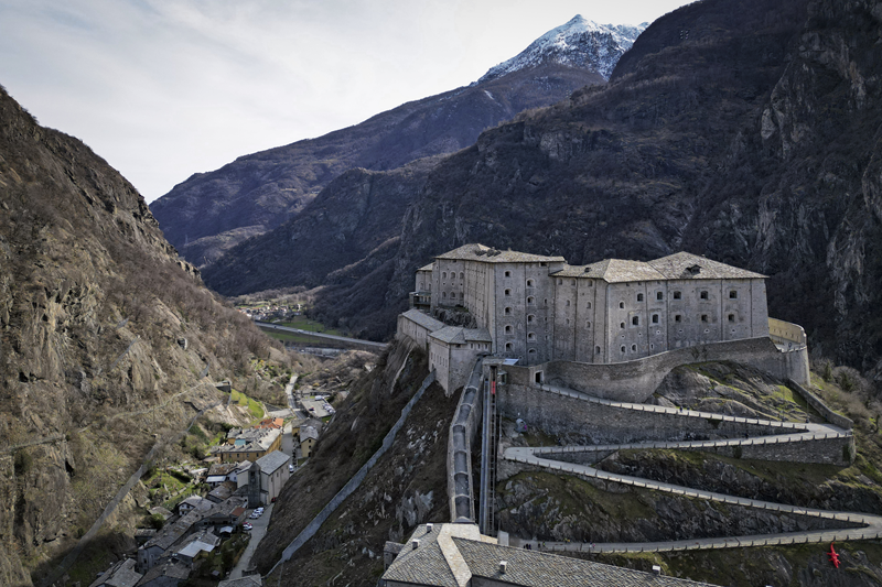 Da Albard di Bard 650 m, si prosegue lungo la strada asfaltata che diviene sterrata nel giro di poche decine metri e si trasforma quasi subito in mulattiera lastricata e gradinata. Risalendo a tornanti un fitto bosco di castagni, la mulattiera (chiaramente realizzata per scopi militari) tocca un nucleo di case dirute, addossate alla roccia. Subito dopo, trascurate le diramazioni di sinistra (in salita) e destra (in discesa) continua riportata su un muretto a secco, in un tratto in cui il fianco della montagna sembra incombere su di essa. Offrendo splendidi scenari sul forte di Bard e sul villaggio di partenza, il tracciato esce dal bosco di castagni, per correre tra pasi e giungere, ben lastricato, all’alpeggio di Verale 1215 m, preceduto da una cappelletta (ore 1.15 dalla partenza). Senza entrare nel borgo si volge a sinistra, proseguendo per sentiero lastricato in forte pendenza che con un lungo traverso porta al Col de la Cou 1372 m, appena sotto il quale, sul versante di Arnad, sorge il grazioso alpeggio di La Cou. Volgendo a sinistra, a questo punto, passando tra ruderi di edifici militari settecenteschi, ripari per fucilieri e muretti di trinceramento coevi alla costruzione del forte, si raggiunge la panoramica Tête de la Cou 1425 m, segnalata da un cippo in pietra, da cui si gode ottimo panorama sul gruppo del M.te Avic, sulle montagne di Champorcher e sul sottostante forte di Bard (ore 2 complessive).