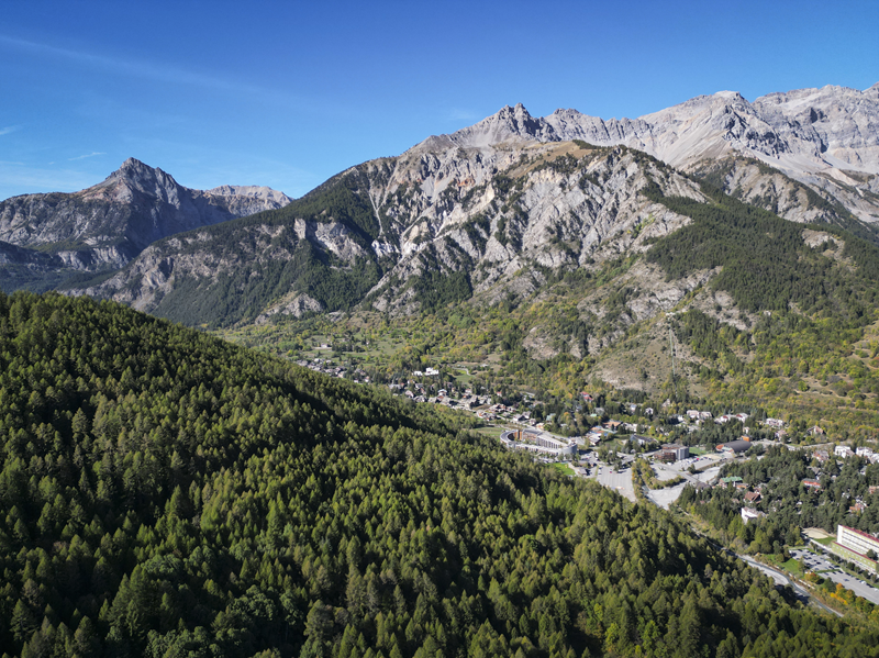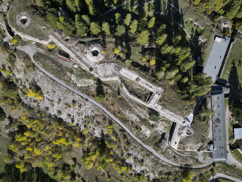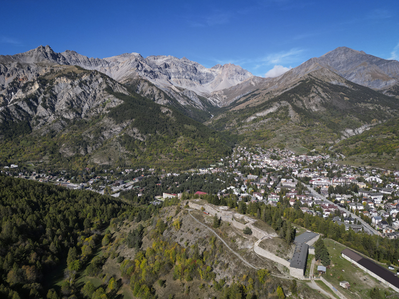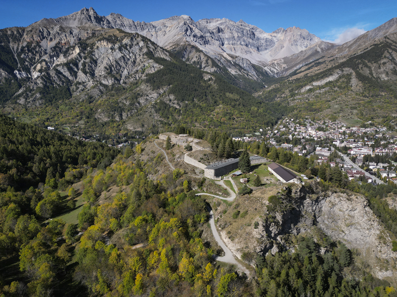 Dal centro di Bardonecchia 1229 m si scende lungo via Bramafam e poi via della Vittoria, seguendo poi a destra, per circa 1 km, la SS. E 24 deviando poi ancora sulla destra per una stradetta sterrata che, sottopassata la ferrovia ed attraversata la Dora inizia a salire nel bosco inanellando tornanti e guadagnando quota. Lasciate a destra, più in basso, le Grange Bersac, la stradicciola raggiunge la graziosa cappelletta dedicata a S. Francesco e S. Chiara, per raggiungere un pianoro dal quale si diramano due strade. Prendendo a destra, in breve, con una leggera rampa si raggiunge l’ingresso del Forte Bramafam 1440 m, posto in ottima posizione panoramica (ore 1.15 dal centro di Bardonecchia)