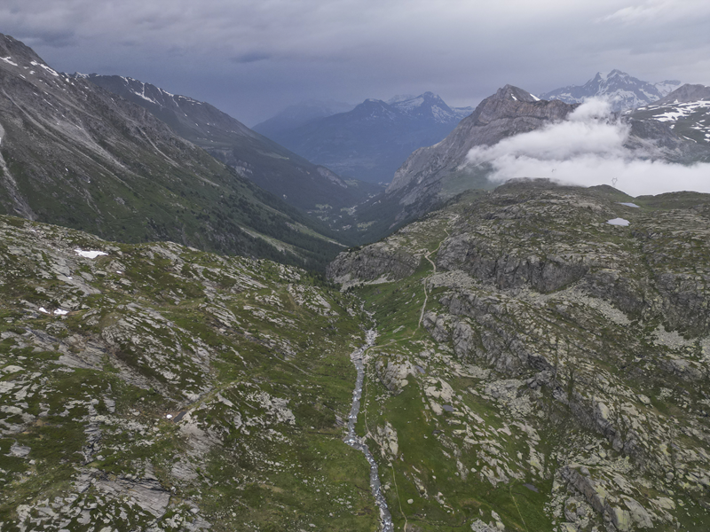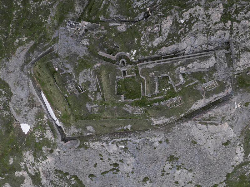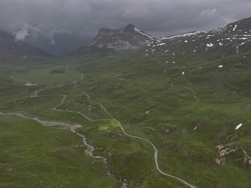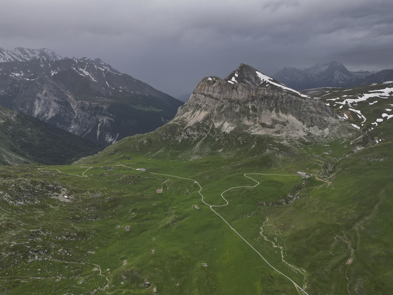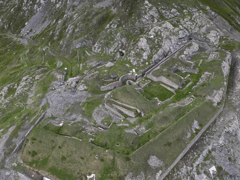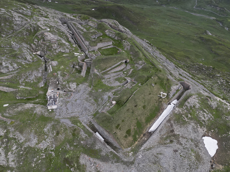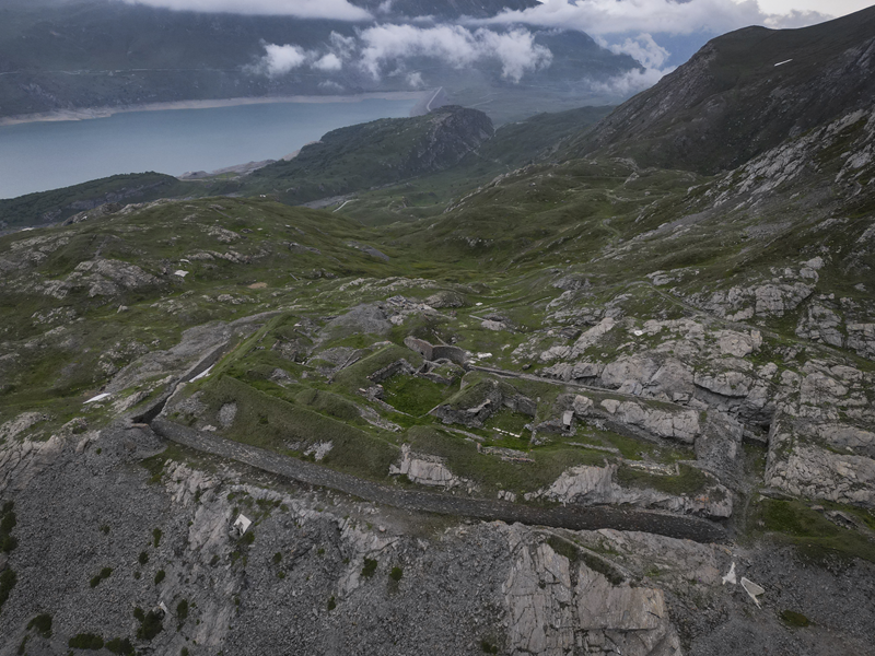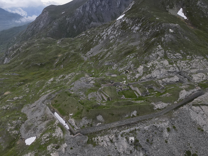 Dal piazzale antistante il villaggio abbandonato di Gran Croce 1870 m si segue la sterrata che sale verso il Mte Malamot fino alla deviazione per il Fort Varisel, che va lasciata a destra. Continuando a sinistra si raggiunge una seconda deviazione, ove si prende a destra per evidente sterrata che affronta un lungo diagonale in falsopiano che porta al Pian della Maddalena, dal quale la strada effettua una serie di tornanti, vera opera di ingegneria militare. Lasciata a destra la Combe Borgne, innevato fino a tarda estate, si supera un risalto erboso, fino a raggiungere l’edificio del comando della fortezza di Pattacroce, unica struttura della zona costruita fuori terra. Poco oltre, finalmente, si raggiunge il vero e proprio Forte Pattacroce2385 m, edificato totalmente in terrapieno, visitabile solo per alcuni ingressi ancora oggi accessibili (ore 2.30 dalla partenza)