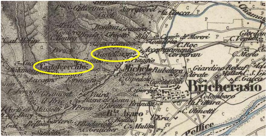 I toponimi Castelvecchio e Castellazzo risultano ancora citato nella “Carta Topografica degli Stati in Terraferma di S.M. il Re di Sardegna”, redatta tra il 1852 e il 1867 (vedi immagine sottostante).