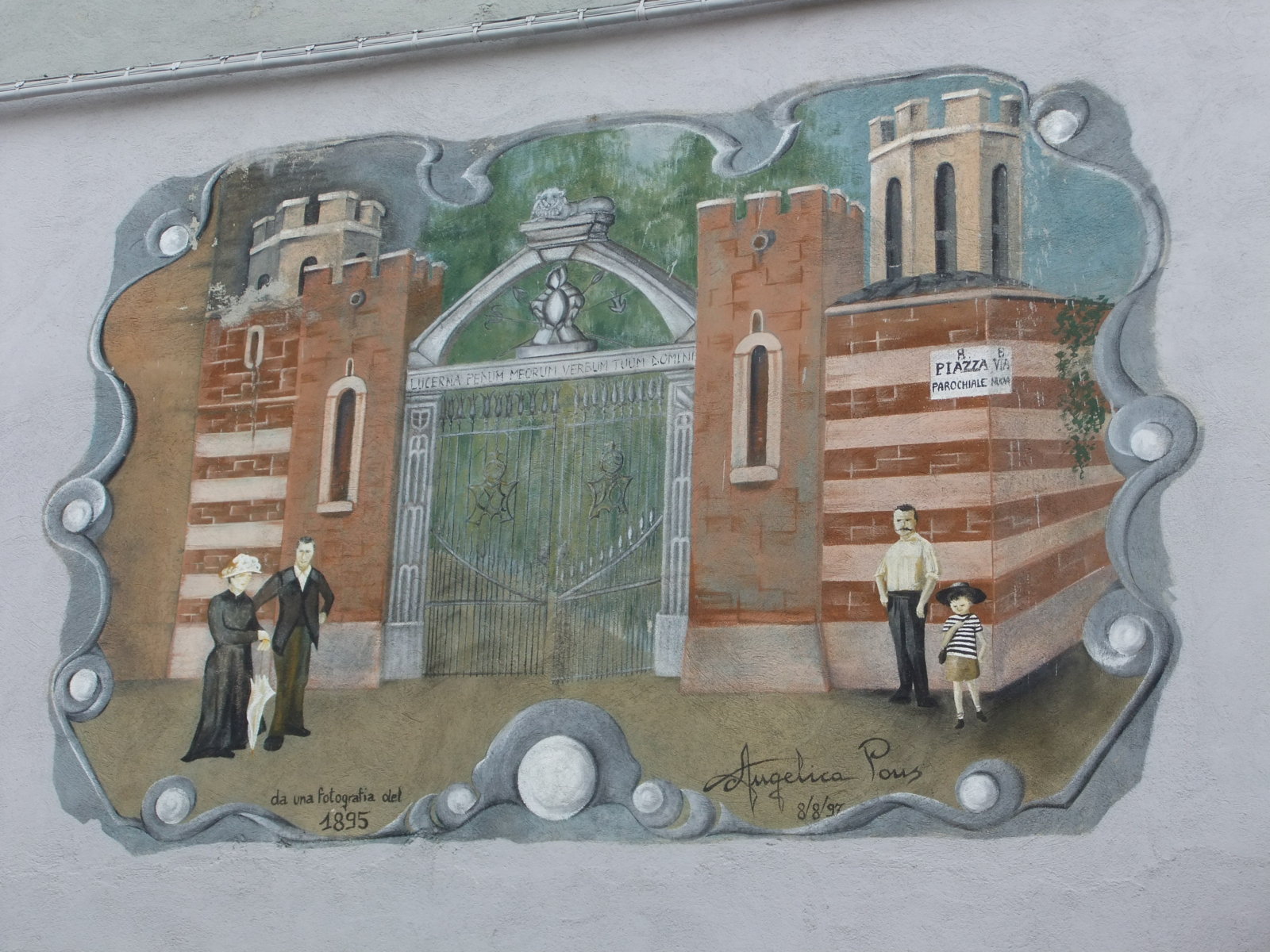 Purtroppo nulla resta del monumentale ingresso composto da una cancellata in ferro, oggi installata su un lato del palazzo comunale di Luserna San Giovanni, in frazione Airali, che originariamente era sormontato da una trave in pietra recante l’antico stemma della casata che raffigurava una lucerna, nonché la scritta “Verbum tuum, Domine, Lucerna pedum meorum” su un lato ed il motto “Lux lucet in tenebris” sull’altro lato. Tale trave fu asportata quando, nel 1931, l’edificio venne ceduto alla suore vincenziane, che ne fecero una casa di riposo dell’Immacolata. Oggi la trave è apposta al monumento commemorativo dei Caduti della Grande Guerra, sito all’angolo tra Via Roma e Viale De Amicis, dove però resta visibile soltanto uno dei due lati, essendo l’altro murato.